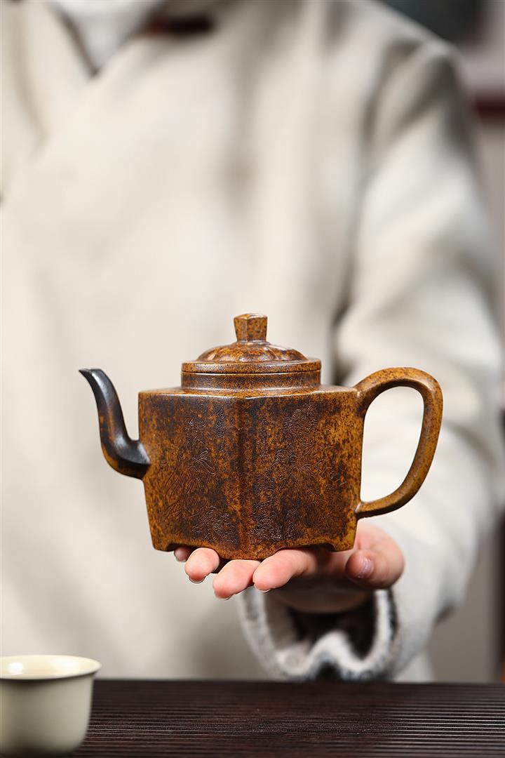原礦朱泥焐灰如意仿古茶壺POT7427