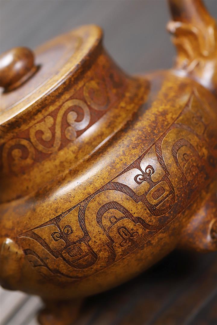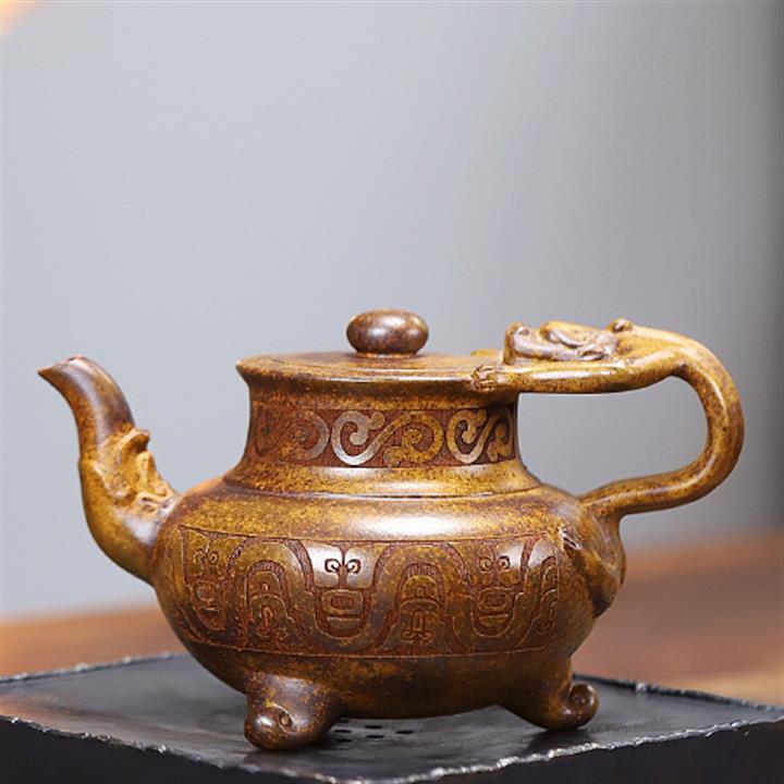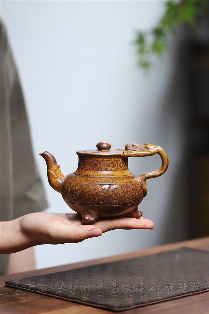 原礦綠泥樂逍遙三足鼎茶壺POT7628