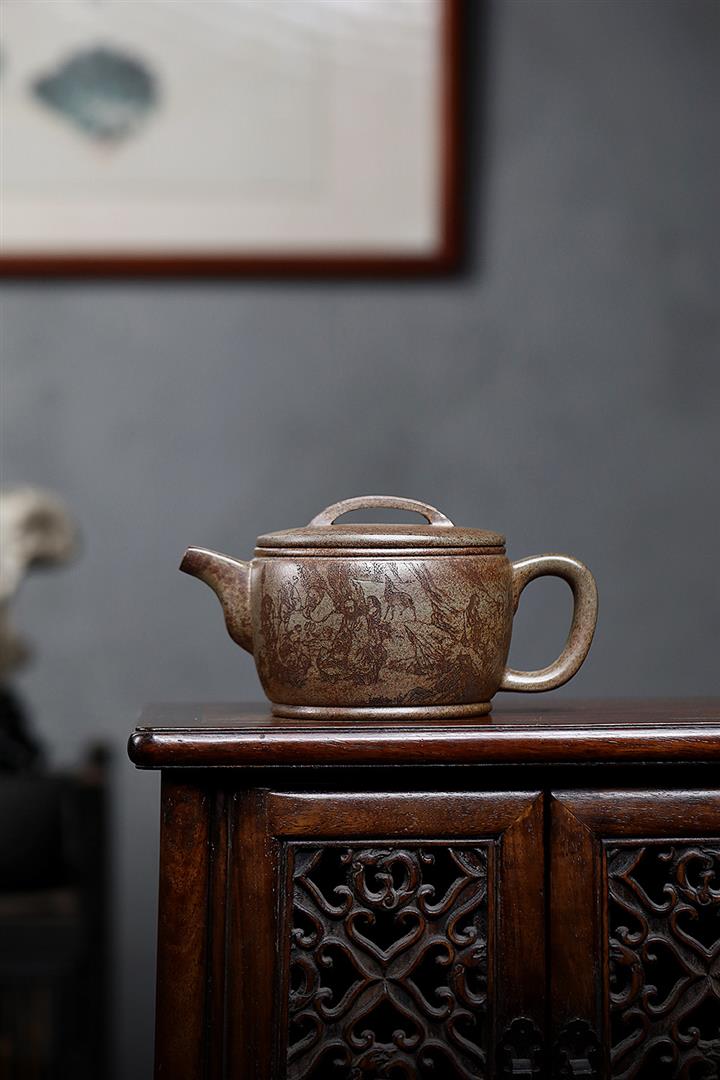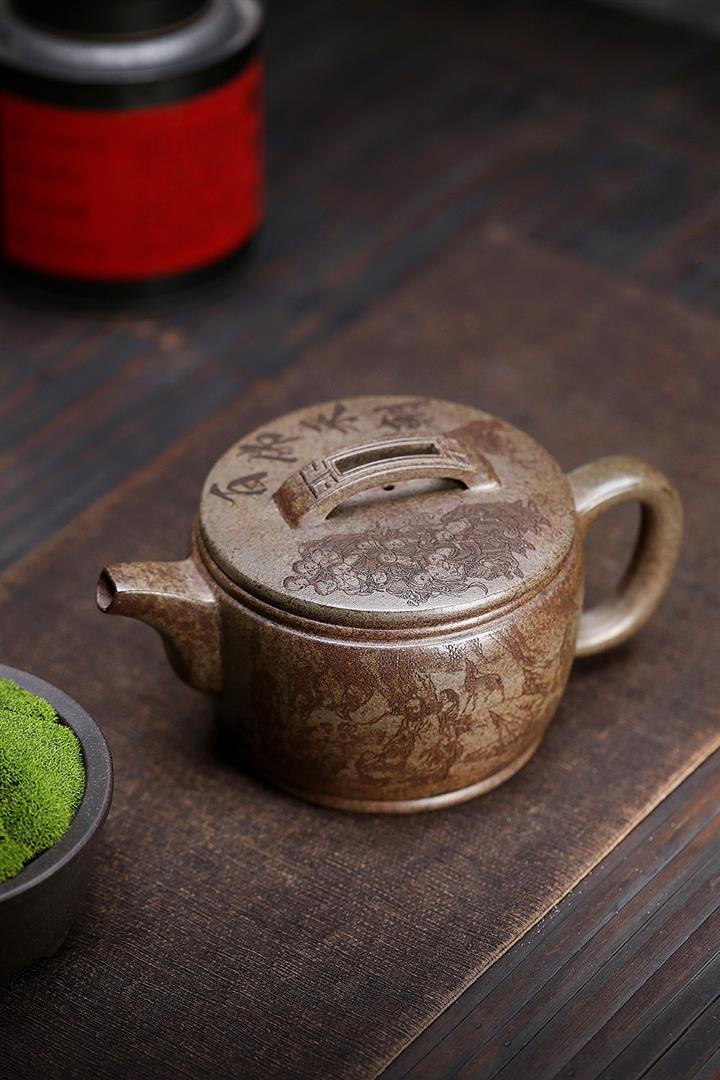 【作品介紹】此款壺形線條流暢,壺把,壺嘴,壺身壹氣呵成栩栩如生,是收藏把玩的好壺,泥料色澤古樸典雅,日久使用,漸露鋒芒,養成變化快,溫潤莊重,用其泡茶,使用的年代久,壺身就溫潤,泡出來的茶湯也就醇郁芳馨。