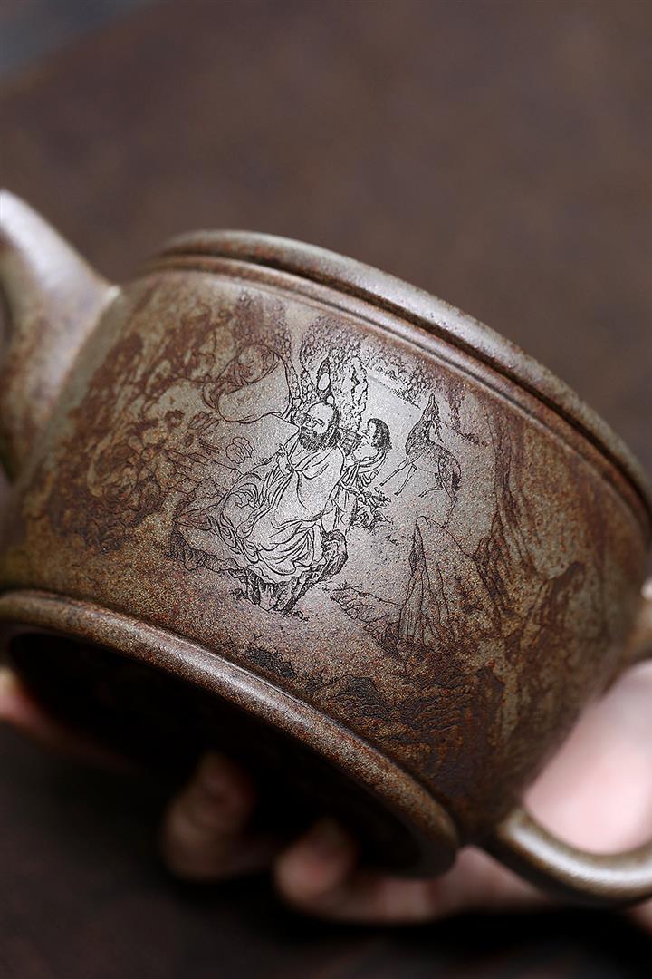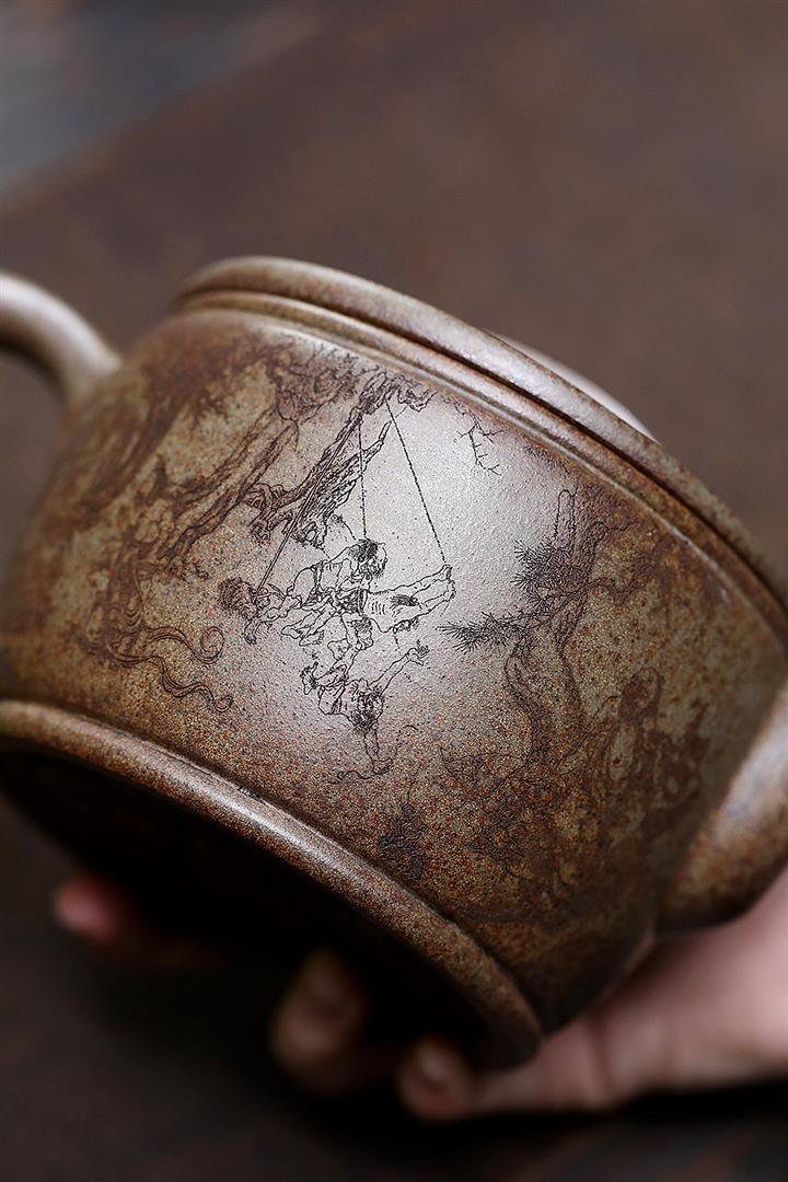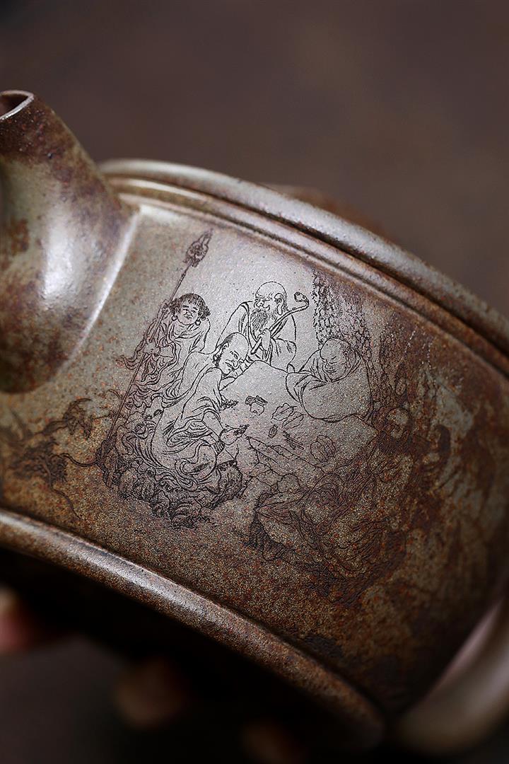 原礦紫泥手工刻畫鳳凰涅槃茶壺POT7128