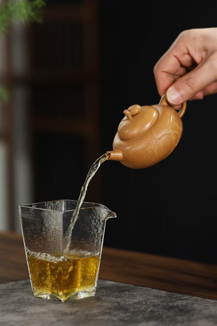 【泥料特點】砂土氣重,似淳實農民,日久使用,漸露鋒芒,養成變化,溫潤莊重。紫砂是壹種雙重氣孔結構的多孔性材質,氣孔微細,密度高。用紫砂壺沏茶,不失原味,且香不渙散,得茶之真香真味。紫砂使用越久,壺身色澤越發光亮照人,氣韻溫雅。紫砂壺長久使用器身會因撫摸擦拭,變得越發溫潤光澤。