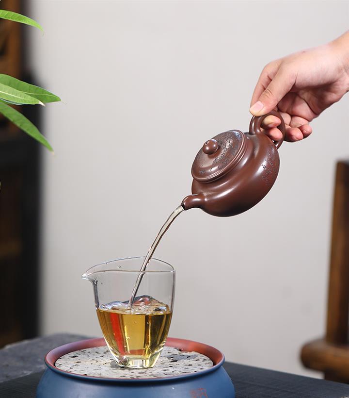 【泥料特點】砂土氣重,似淳實農民,日久使用,漸露鋒芒,養成變化,溫潤莊重。紫砂是壹種雙重氣孔結構的多孔性材質,氣孔微細,密度高。用紫砂壺沏茶,不失原味,且香不渙散,得茶之真香真味。紫砂使用越久,壺身色澤越發光亮照人,氣韻溫雅。紫砂壺長久使用器身會因撫摸擦拭,變得越發溫潤光澤。