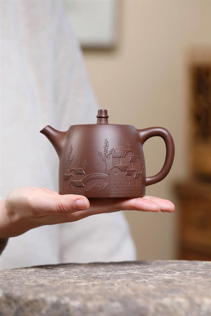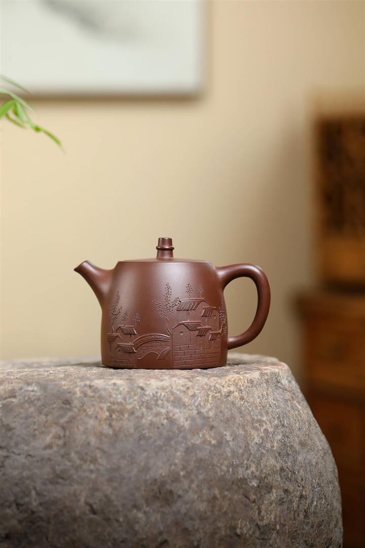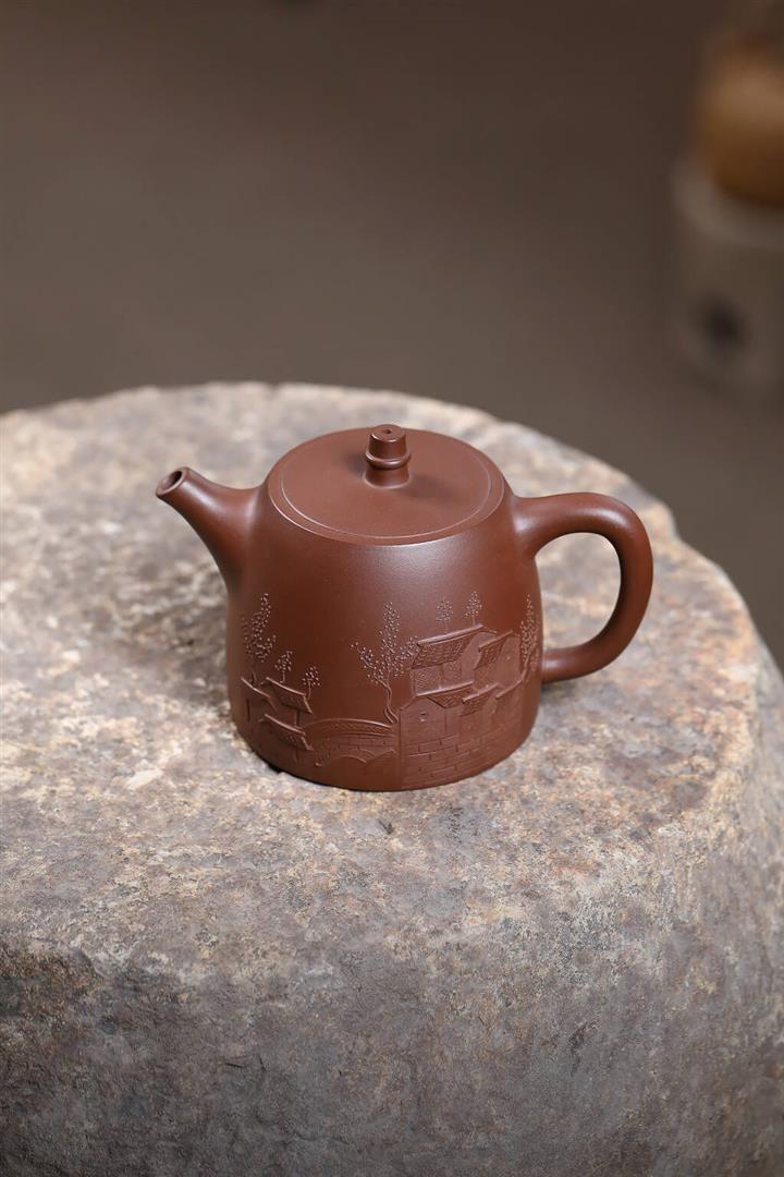 原礦紫泥彩繪山水竹段泡茶壺POT6950