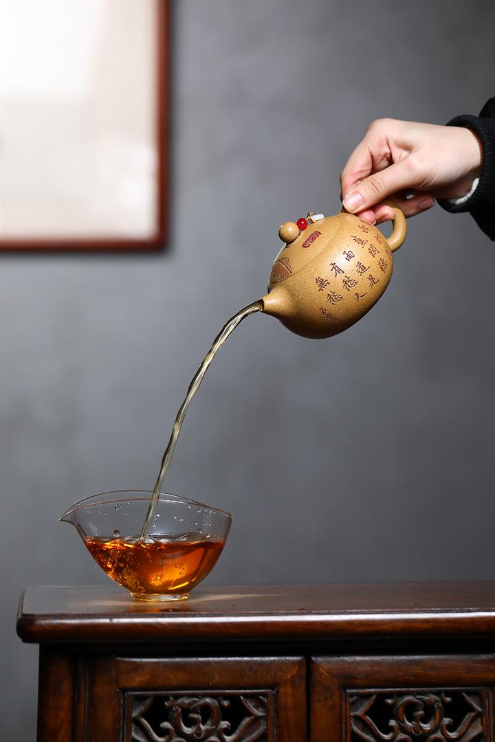 【泥料特點】砂土氣重,似淳實農民,日久使用,漸露鋒芒,養成變化,溫潤莊重。紫砂是壹種雙重氣孔結構的多孔性材質,氣孔微細,密度高。用紫砂壺沏茶,不失原味,且香不渙散,得茶之真香真味。紫砂使用越久,壺身色澤越發光亮照人,氣韻溫雅。紫砂壺長久使用器身會因撫摸擦拭,變得越發溫潤光澤。