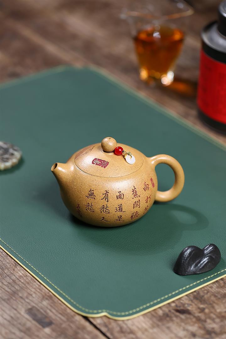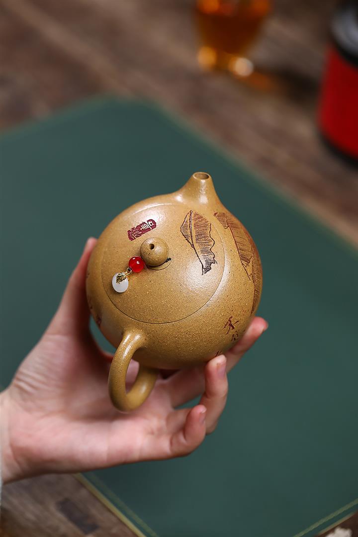 【作品介紹】此款壺形線條流暢,壺把,壺嘴,壺身壹氣呵成栩栩如生,是收藏把玩的好壺,泥料色澤古樸典雅,日久使用,漸露鋒芒,養成變化快,溫潤莊重,用其泡茶,使用的年代久,壺身就溫潤,泡出來的茶湯也就醇郁芳馨。