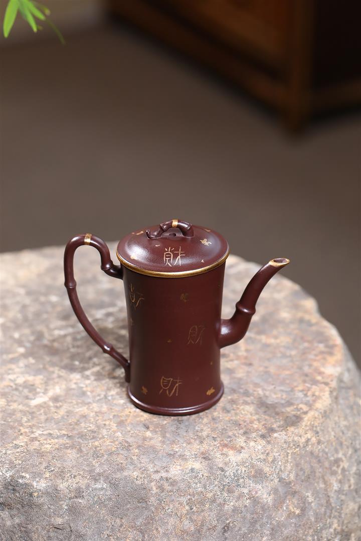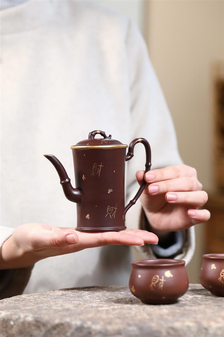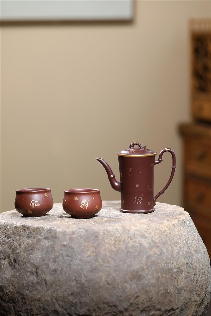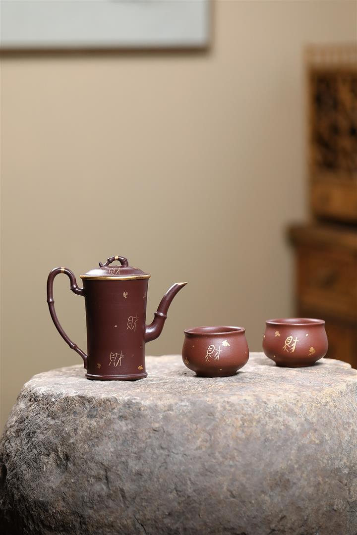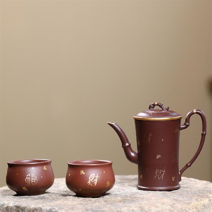 160cc原礦老紫泥描金竹段壹壺兩杯套組泡茶壺POT9843