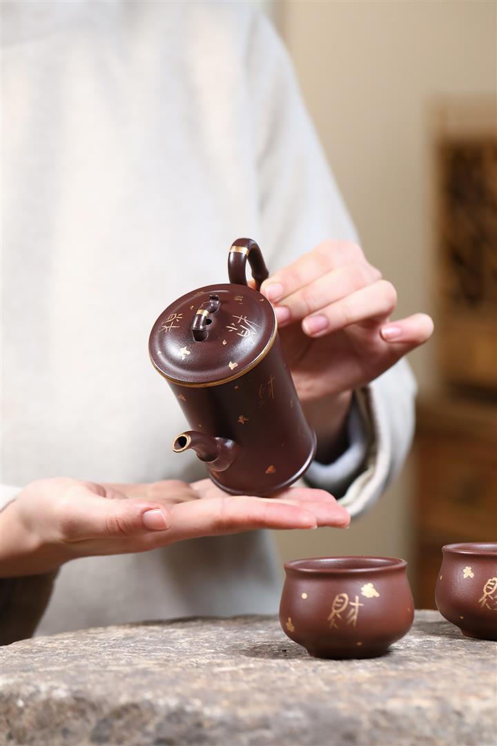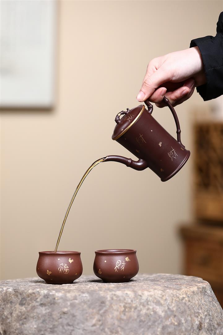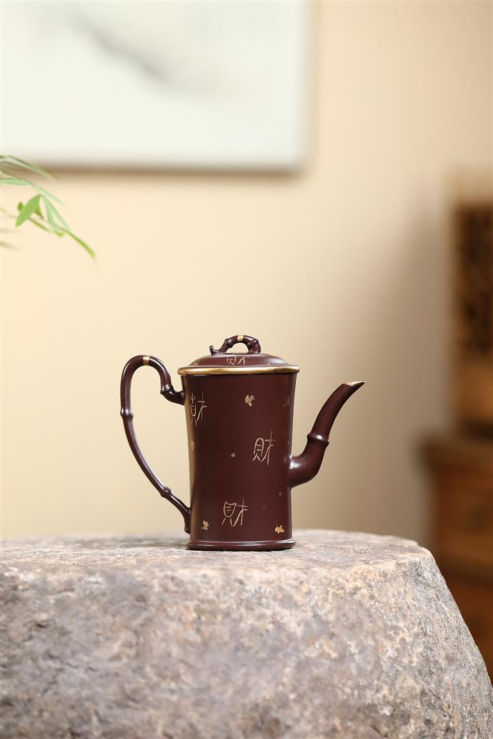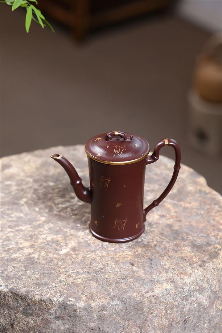 160cc原礦老紫泥描金竹段壹壺兩杯套組泡茶壺POT9843