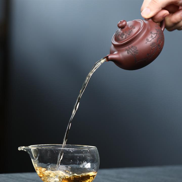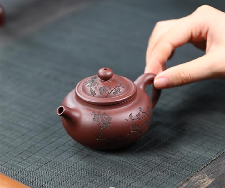 【泥料特點】砂土氣重,似淳實農民,日久使用,漸露鋒芒,養成變化,溫潤莊重。紫砂是壹種雙重氣孔結構的多孔性材質,氣孔微細,密度高。用紫砂壺沏茶,不失原味,且香不渙散,得茶之真香真味。紫砂使用越久,壺身色澤越發光亮照人,氣韻溫雅。紫砂壺長久使用器身會因撫摸擦拭,變得越發溫潤光澤。