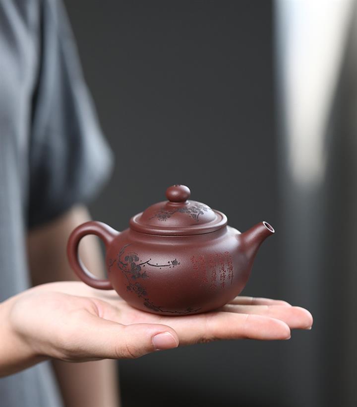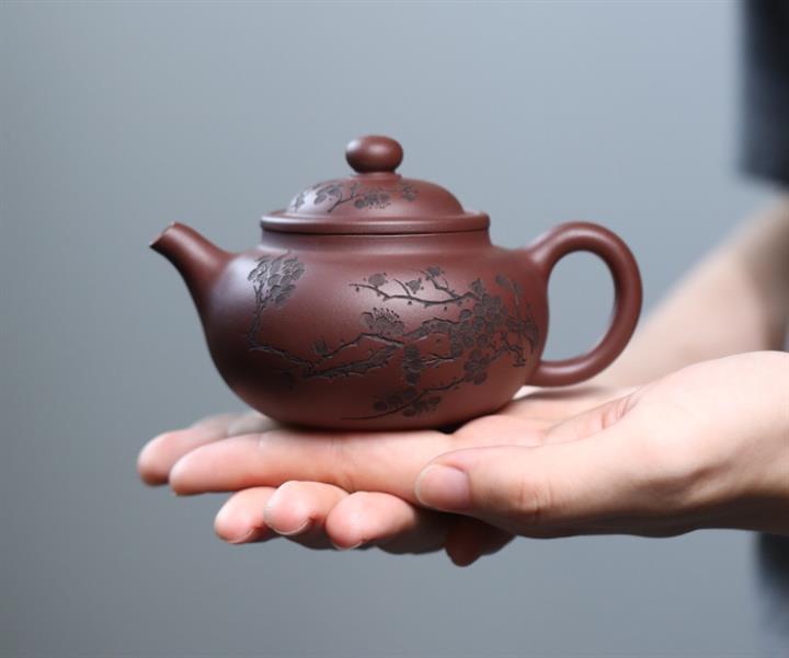 原礦老紫泥純手工刻繪乾坤茶壺POT6599