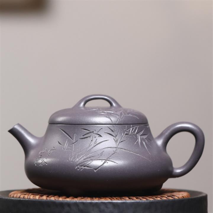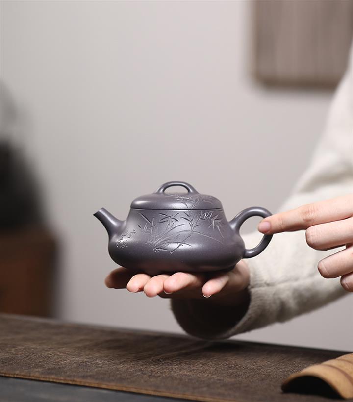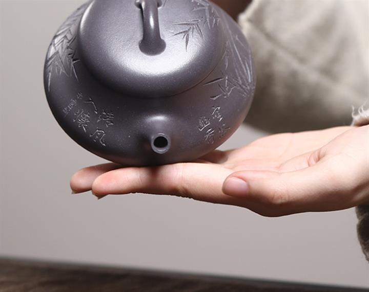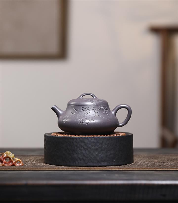 330cc原礦沈香泥柴燒竹影熊韻漢瓦壺POT8421