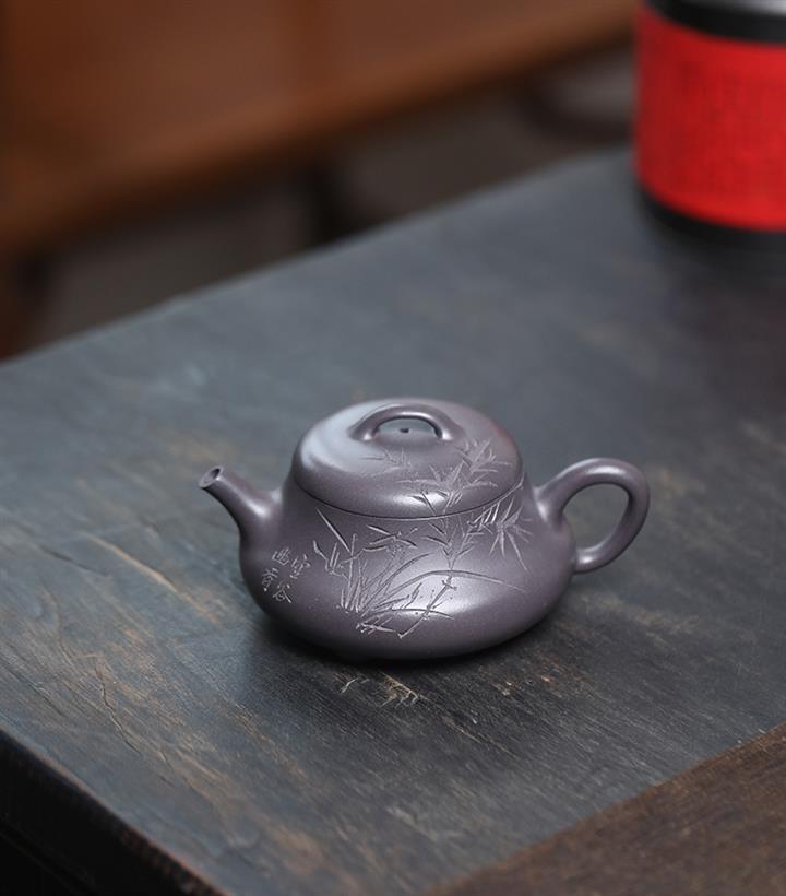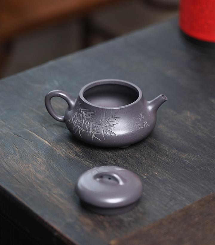 300cc原礦柴燒沈香泥沈煙翠影竹鼎壺POT8430