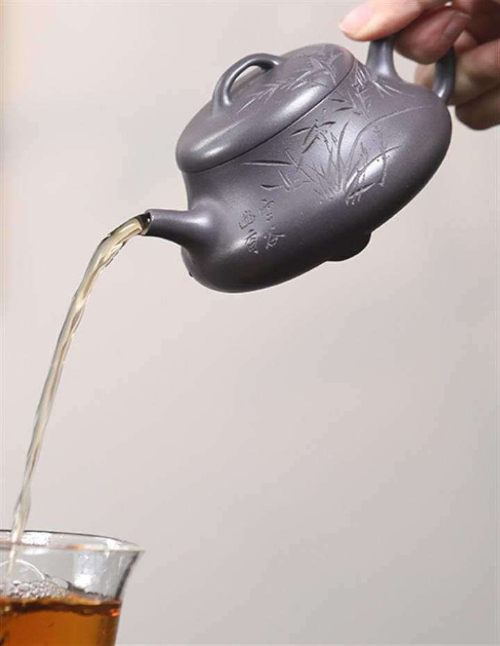 【泥料特點】砂土氣重,似淳實農民,日久使用,漸露鋒芒,養成變化,溫潤莊重。紫砂是壹種雙重氣孔結構的多孔性材質,氣孔微細,密度高。用紫砂壺沏茶,不失原味,且香不渙散,得茶之真香真味。紫砂使用越久,壺身色澤越發光亮照人,氣韻溫雅。紫砂壺長久使用器身會因撫摸擦拭,變得越發溫潤光澤。