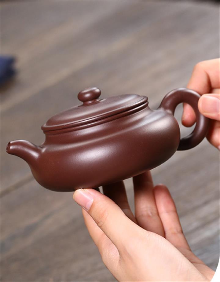 220cc原礦紫朱泥扁腹泡茶壺POT9907