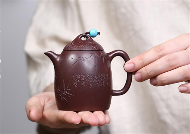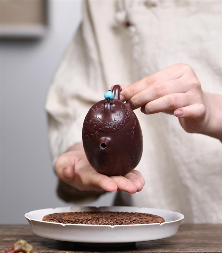 【泥料特點】砂土氣重,似淳實農民,日久使用,漸露鋒芒,養成變化,溫潤莊重。紫砂是壹種雙重氣孔結構的多孔性材質,氣孔微細,密度高。用紫砂壺沏茶,不失原味,且香不渙散,得茶之真香真味。紫砂使用越久,壺身色澤越發光亮照人,氣韻溫雅。紫砂壺長久使用器身會因撫摸擦拭,變得越發溫潤光澤。