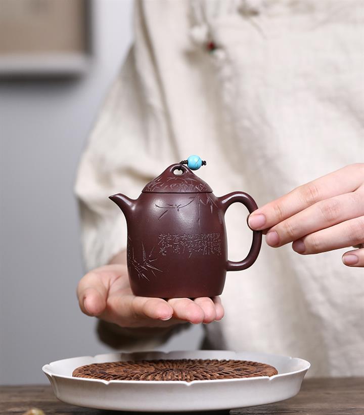 140cc原礦鐵血紅砂禪竹高秦權泡茶壺POT9956