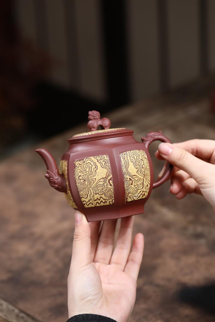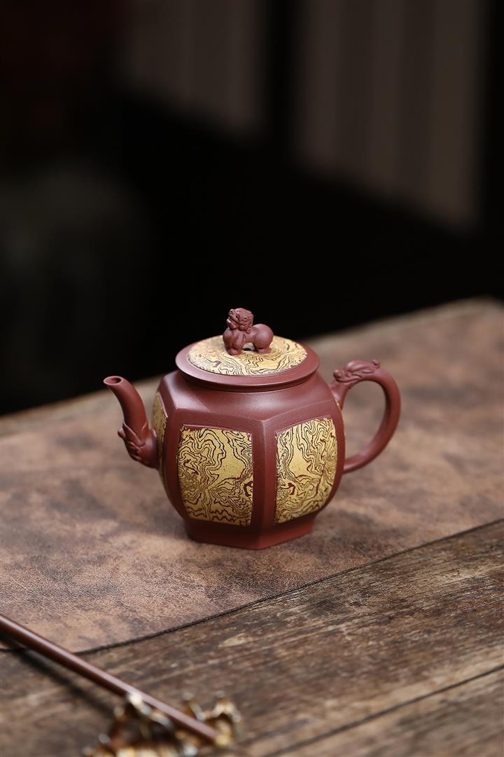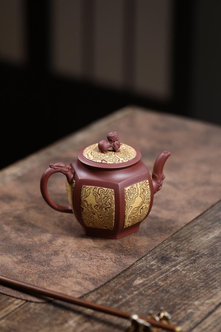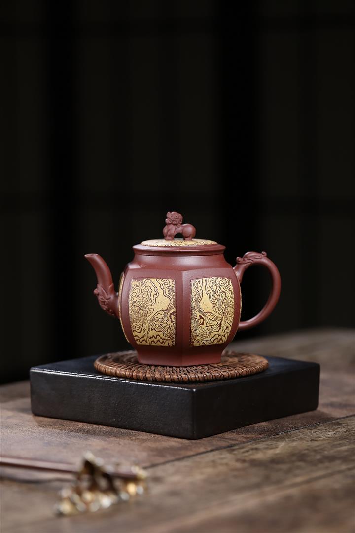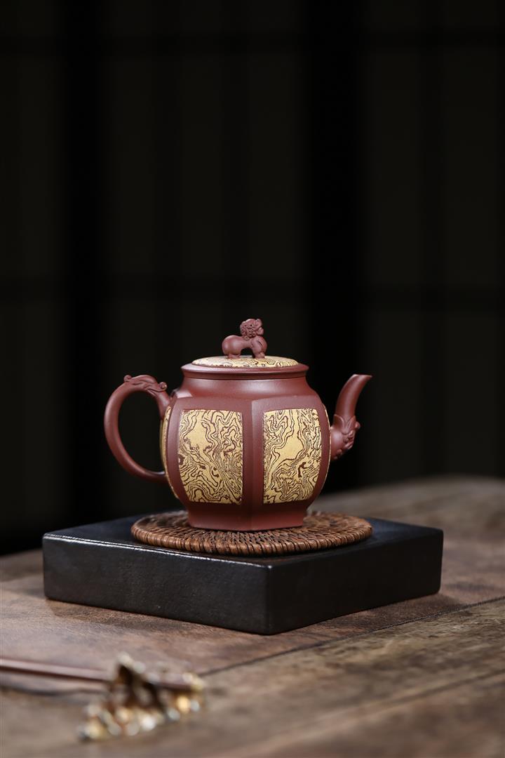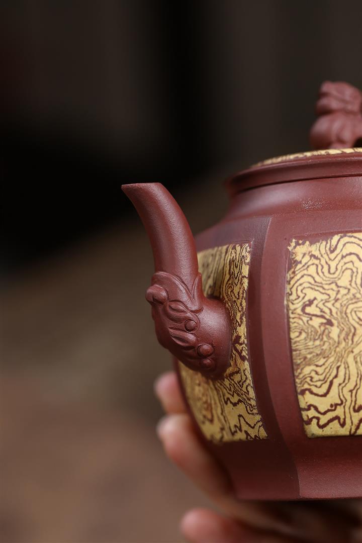 280cc原礦稀有紅皮龍四方如意茶壺POT8710