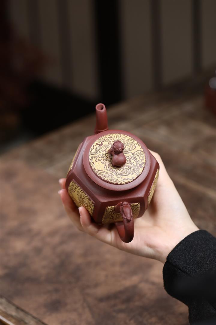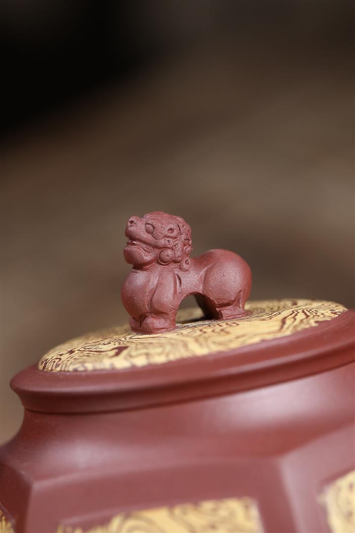320cc原礦紫泥絞泥六方獅球泡茶壺POT9958