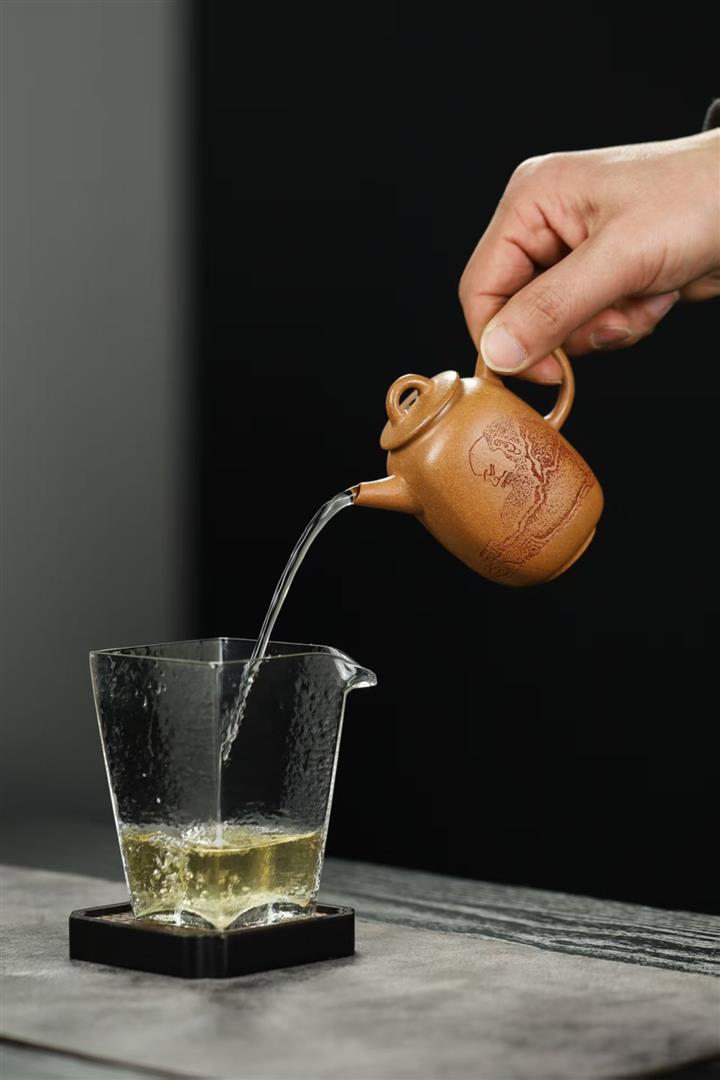 【泥料特點】砂土氣重,似淳實農民,日久使用,漸露鋒芒,養成變化,溫潤莊重。紫砂是壹種雙重氣孔結構的多孔性材質,氣孔微細,密度高。用紫砂壺沏茶,不失原味,且香不渙散,得茶之真香真味。紫砂使用越久,壺身色澤越發光亮照人,氣韻溫雅。紫砂壺長久使用器身會因撫摸擦拭,變得越發溫潤光澤。