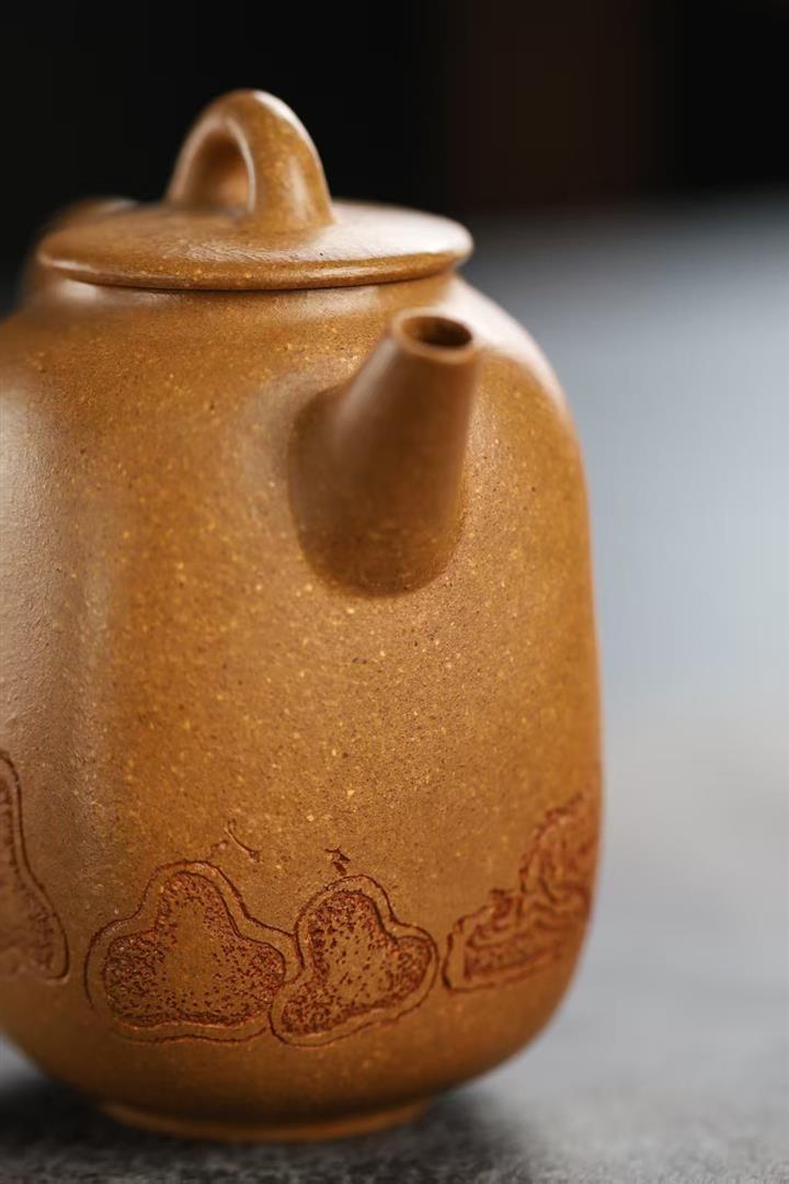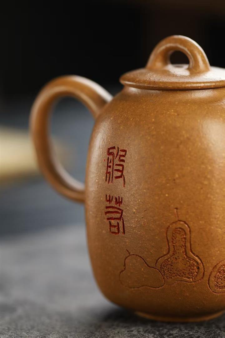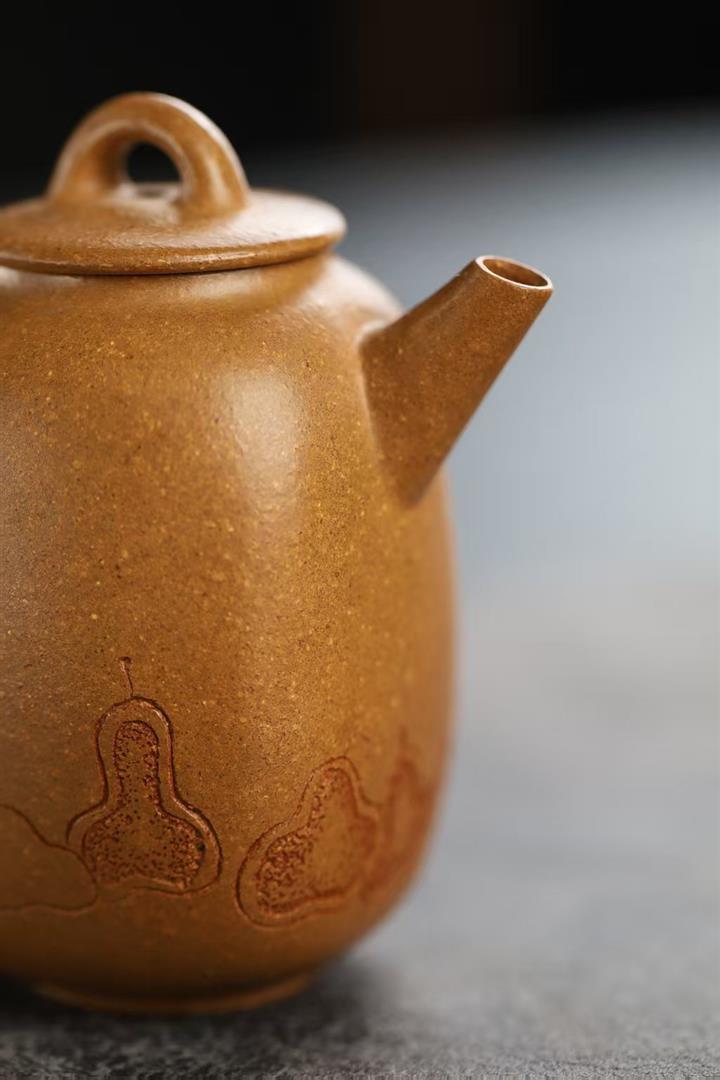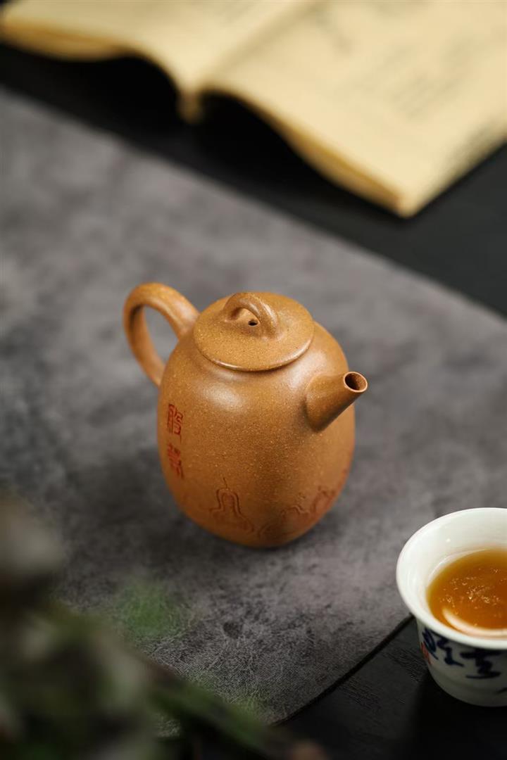 【作品介紹】此款壺形線條流暢,壺把,壺嘴,壺身壹氣呵成栩栩如生,是收藏把玩的好壺,泥料色澤古樸典雅,日久使用,漸露鋒芒,養成變化快,溫潤莊重,用其泡茶,使用的年代久,壺身就溫潤,泡出來的茶湯也就醇郁芳馨。