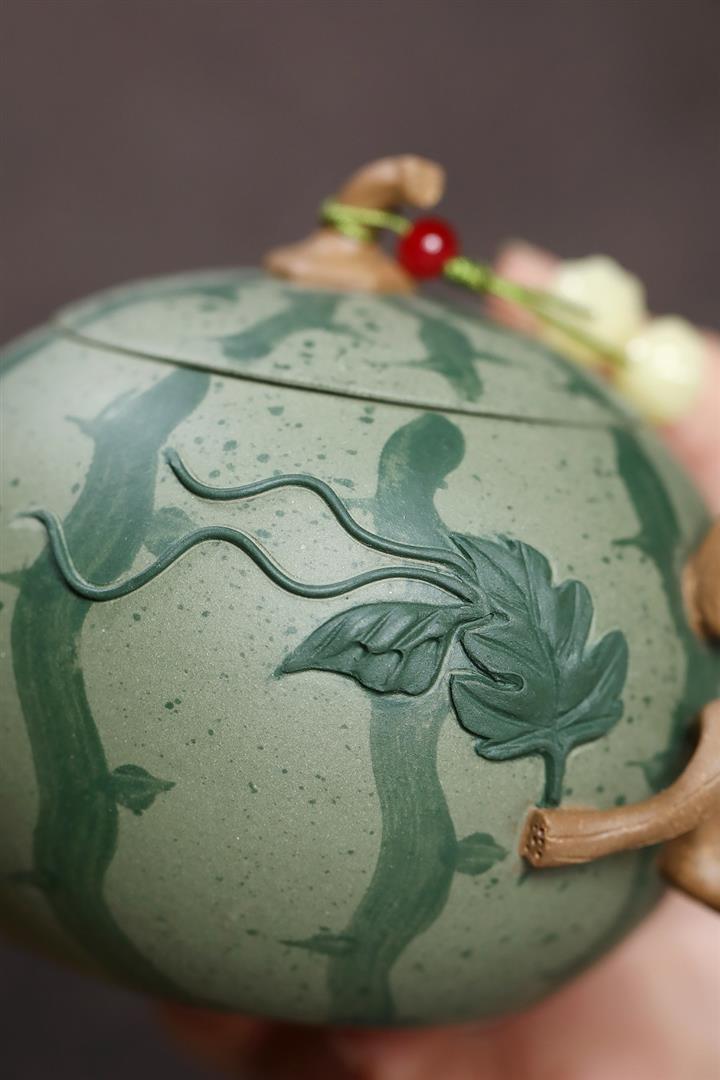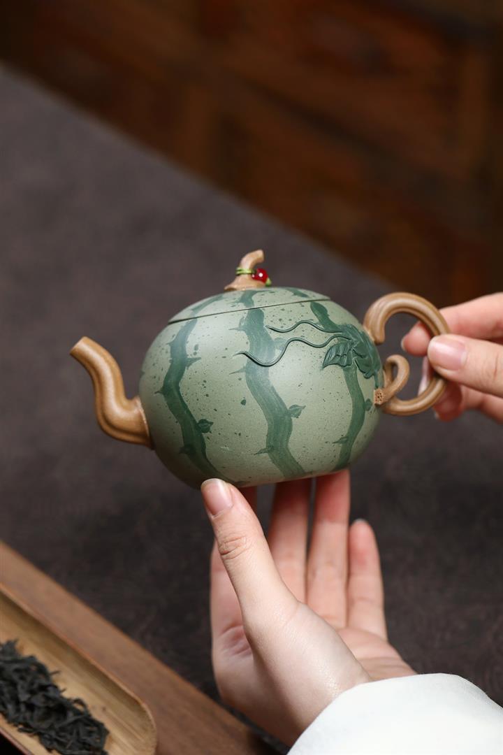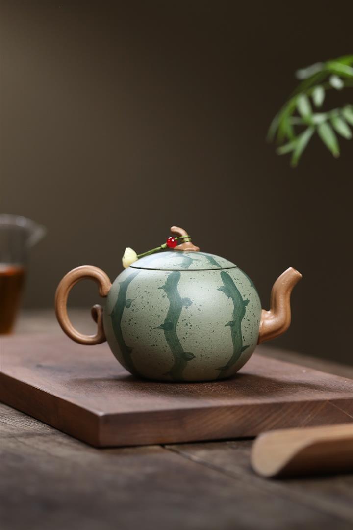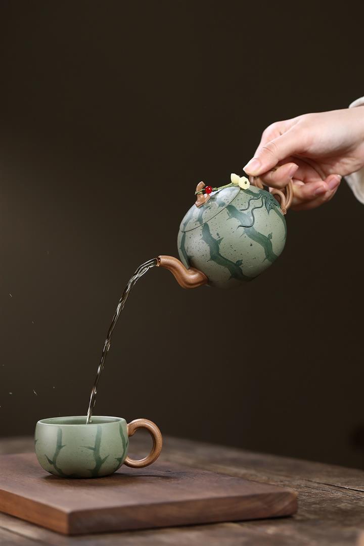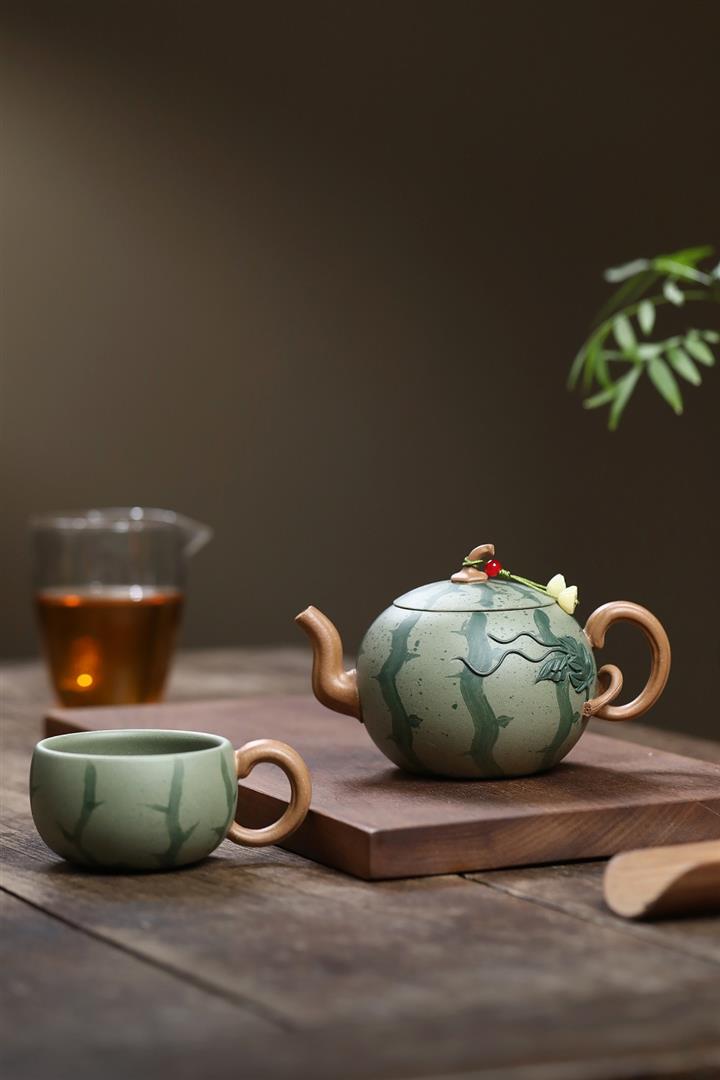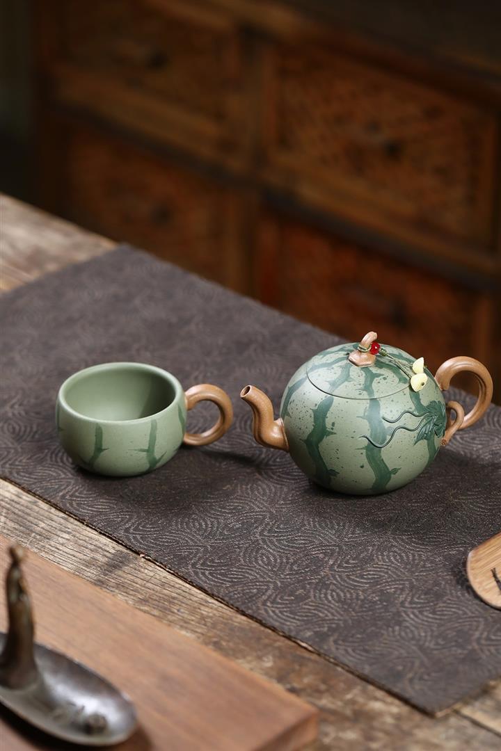 290cc原礦粉漿段泥西瓜紋韻壹壺壹杯套裝泡茶壺POT9962