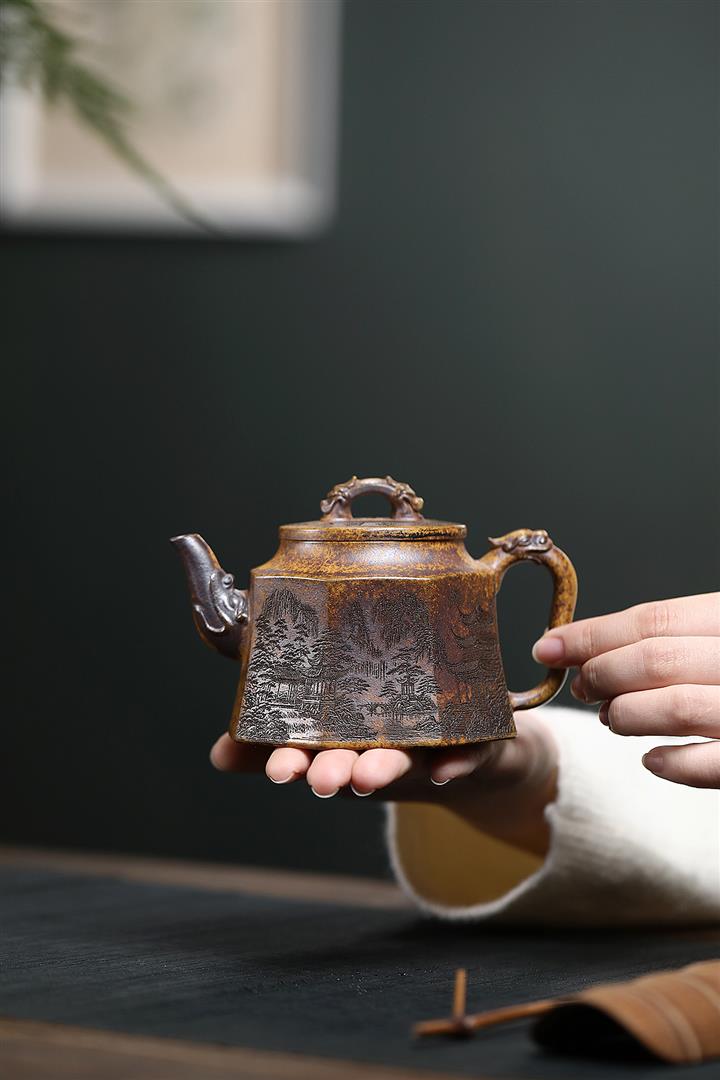 250cc原礦龍骨金砂高溫柴燒山水龍尊泡茶壺POT9986