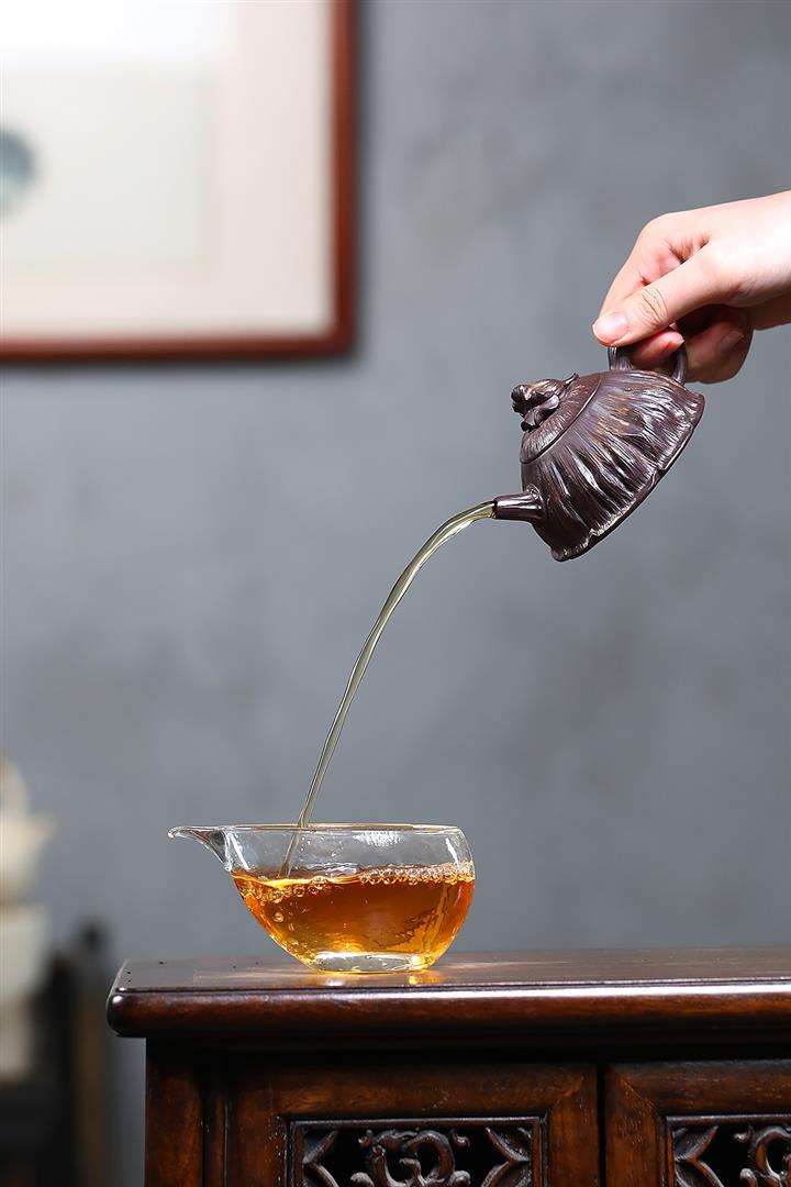 【泥料特點】砂土氣重,似淳實農民,日久使用,漸露鋒芒,養成變化,溫潤莊重。紫砂是壹種雙重氣孔結構的多孔性材質,氣孔微細,密度高。用紫砂壺沏茶,不失原味,且香不渙散,得茶之真香真味。紫砂使用越久,壺身色澤越發光亮照人,氣韻溫雅。紫砂壺長久使用器身會因撫摸擦拭,變得越發溫潤光澤。