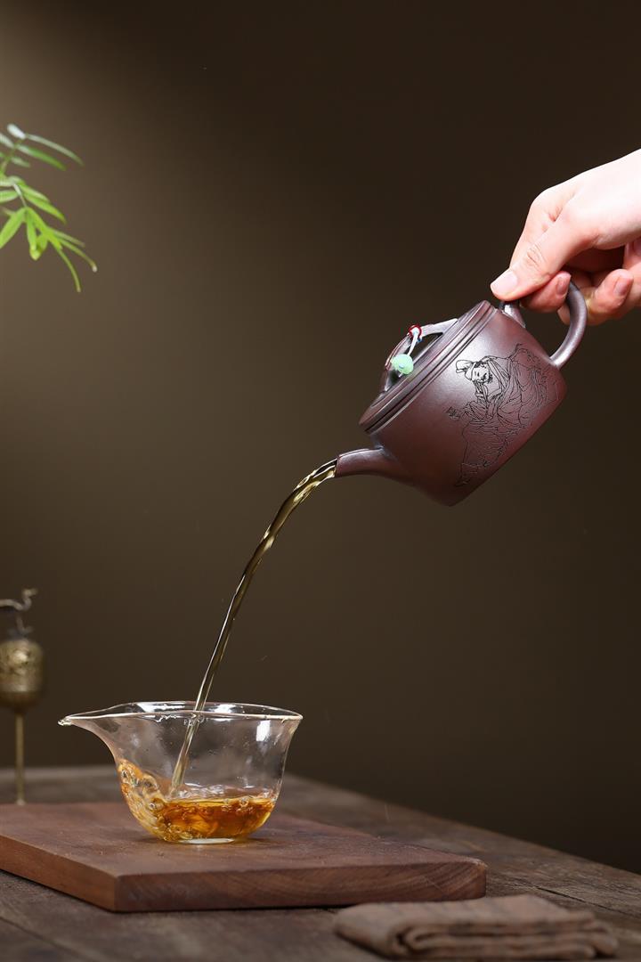 【泥料特點】砂土氣重,似淳實農民,日久使用,漸露鋒芒,養成變化,溫潤莊重。紫砂是壹種雙重氣孔結構的多孔性材質,氣孔微細,密度高。用紫砂壺沏茶,不失原味,且香不渙散,得茶之真香真味。紫砂使用越久,壺身色澤越發光亮照人,氣韻溫雅。紫砂壺長久使用器身會因撫摸擦拭,變得越發溫潤光澤。