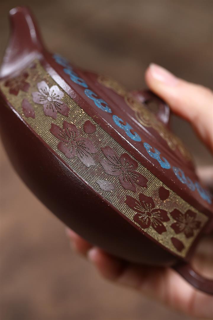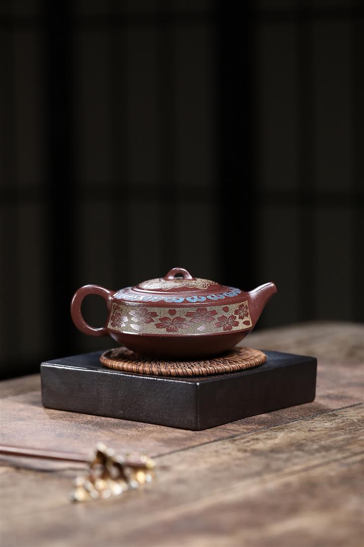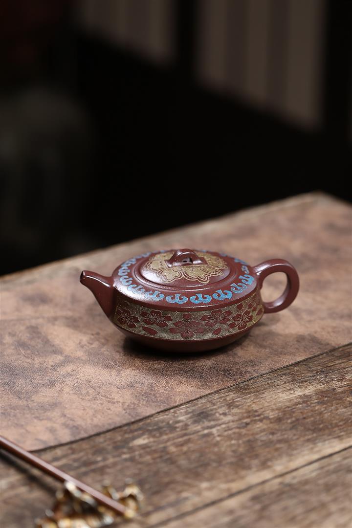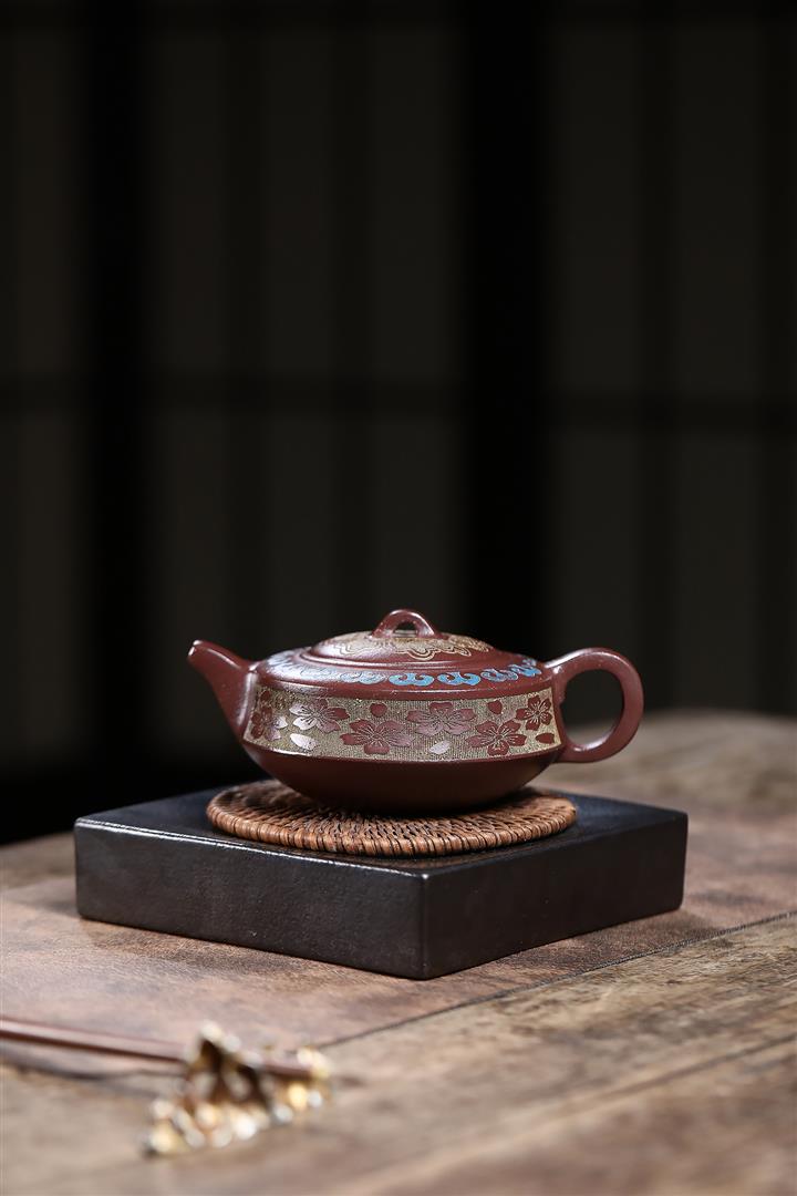 290cc原礦鐵紅泥變色繁花泡茶壺POT10018