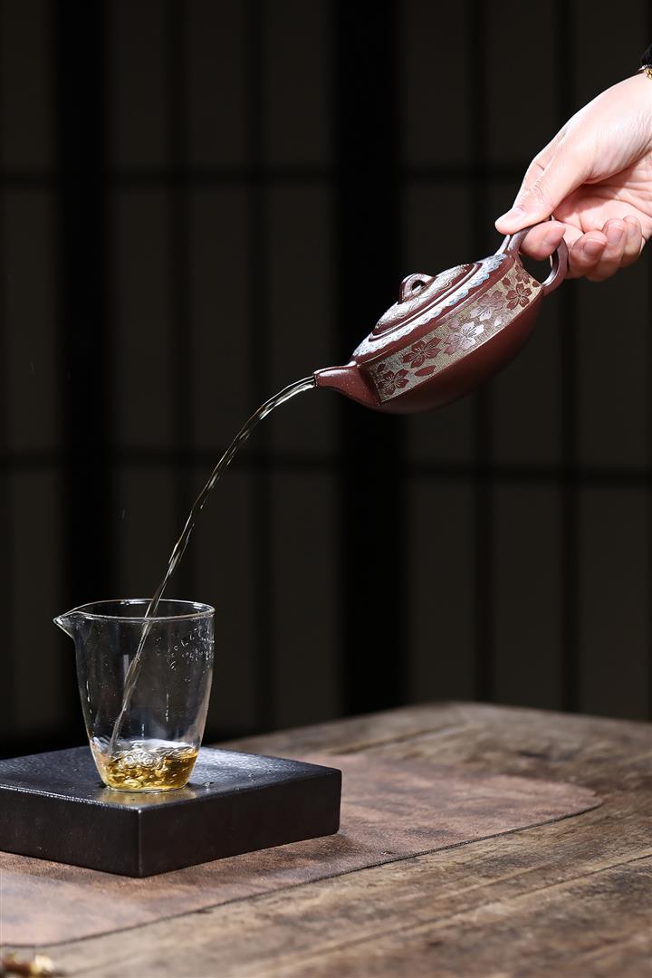 【泥料特點】砂土氣重,似淳實農民,日久使用,漸露鋒芒,養成變化,溫潤莊重。紫砂是壹種雙重氣孔結構的多孔性材質,氣孔微細,密度高。用紫砂壺沏茶,不失原味,且香不渙散,得茶之真香真味。紫砂使用越久,壺身色澤越發光亮照人,氣韻溫雅。紫砂壺長久使用器身會因撫摸擦拭,變得越發溫潤光澤。