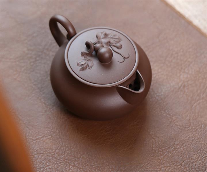220cc玄鐵石黃黑料線瓢館藏茶壺POT8205