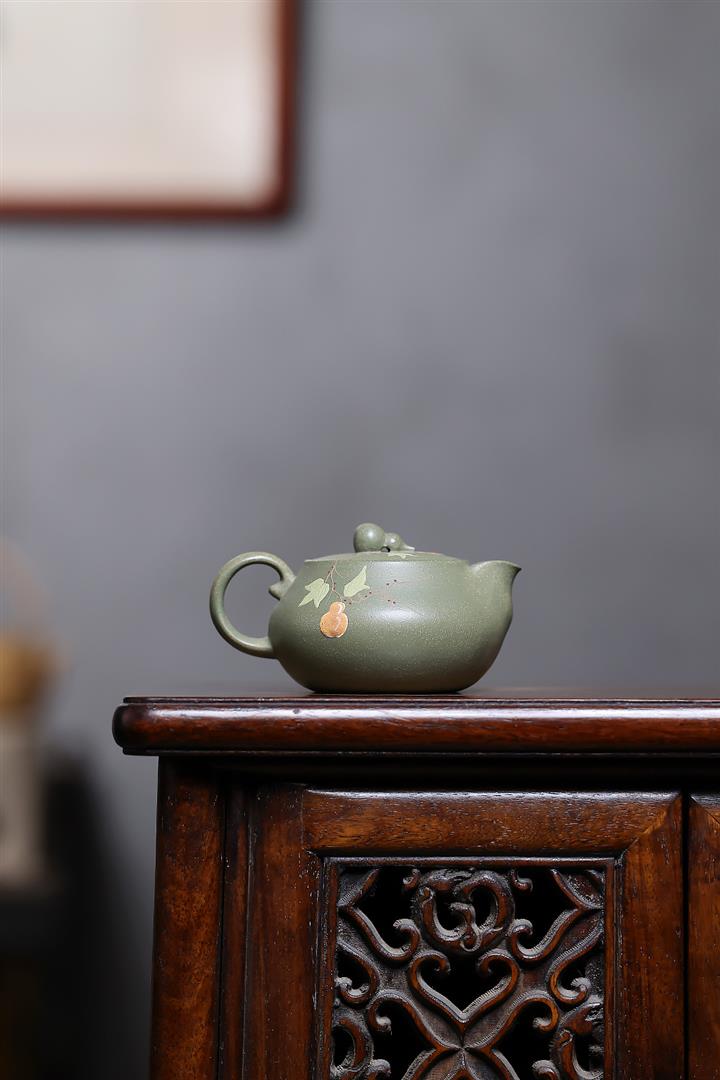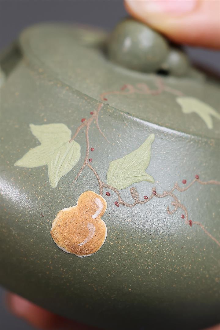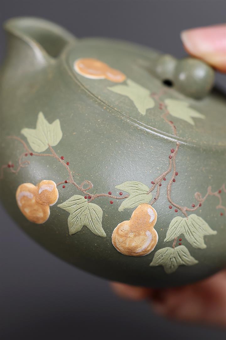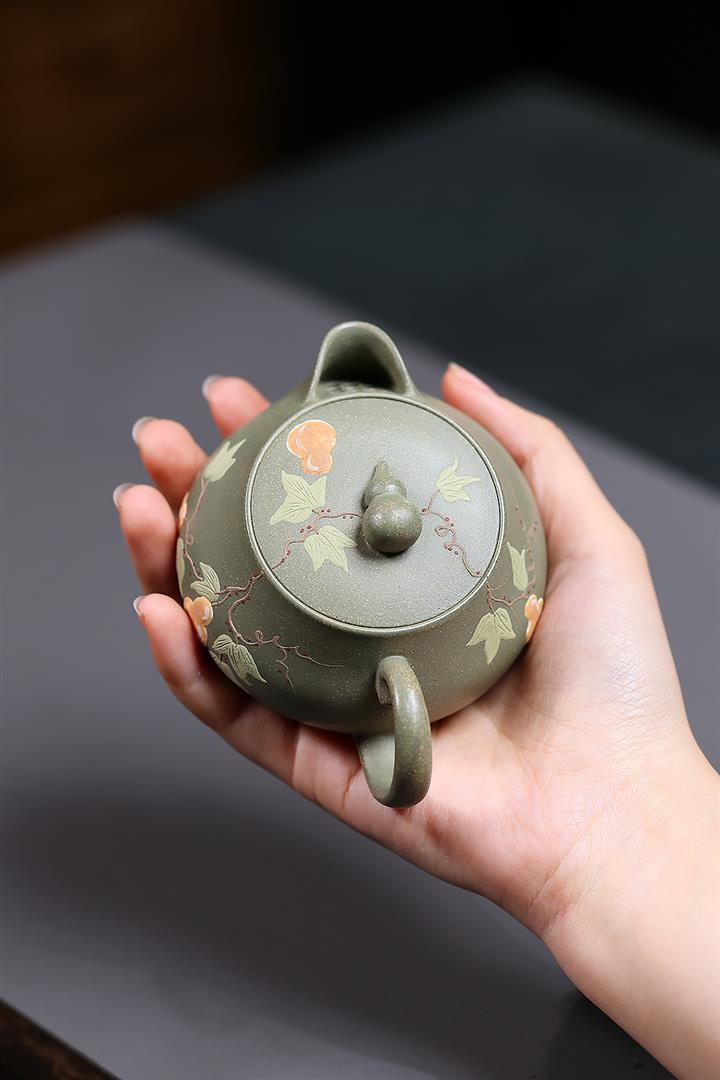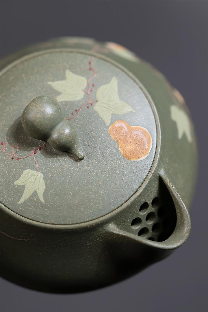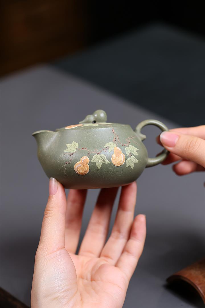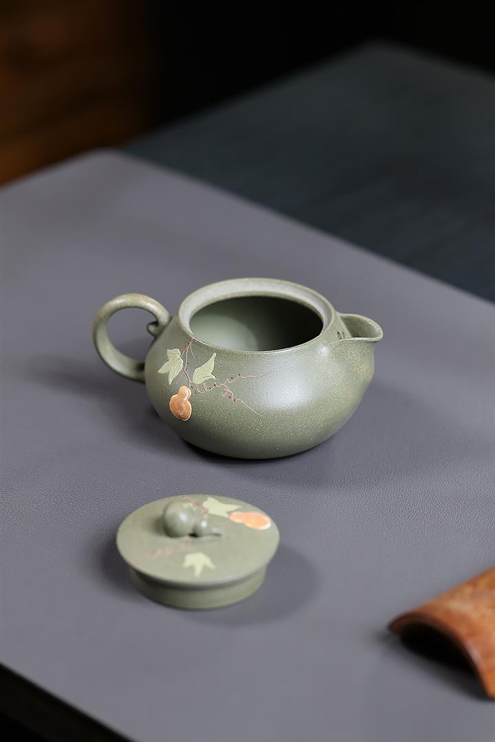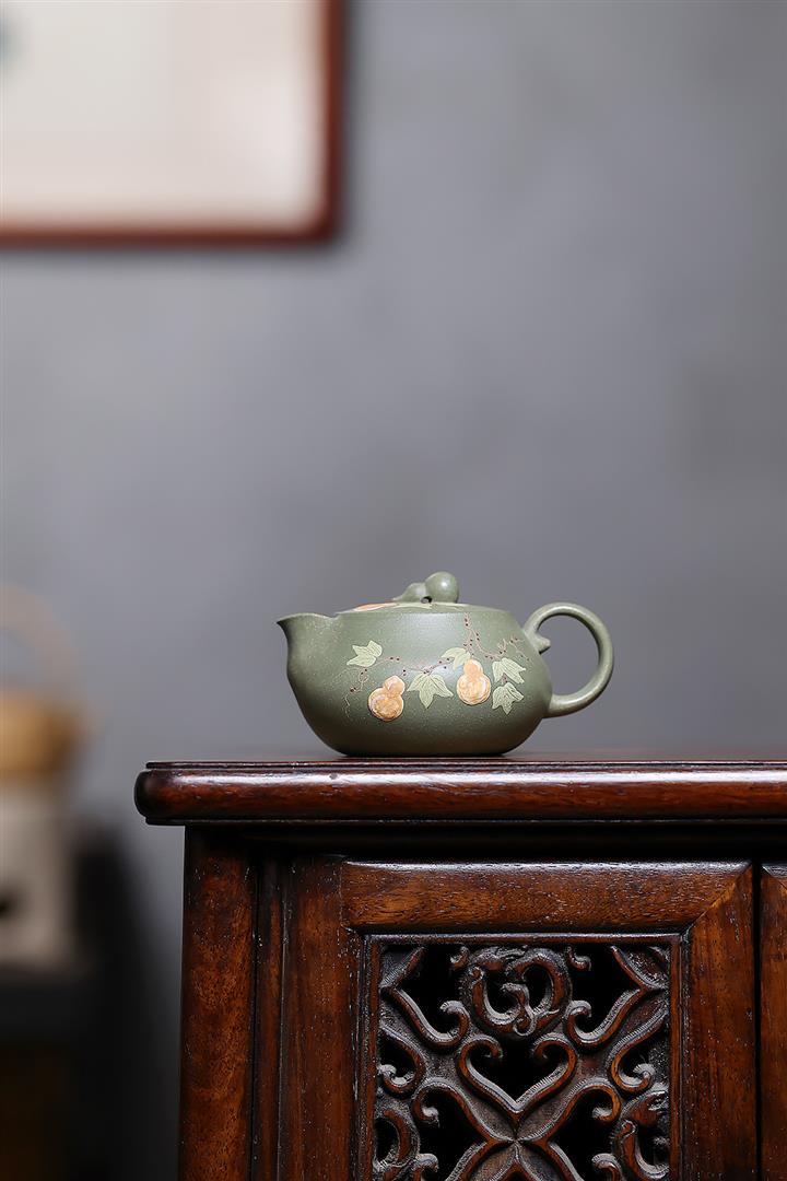 140cc原礦豆青砂福祿安康葫蘆泡茶壺POT10105