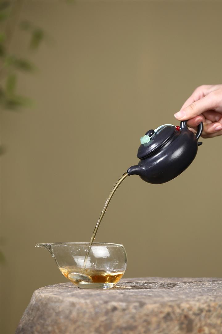 【泥料特點】砂土氣重,似淳實農民,日久使用,漸露鋒芒,養成變化,溫潤莊重。紫砂是壹種雙重氣孔結構的多孔性材質,氣孔微細,密度高。用紫砂壺沏茶,不失原味,且香不渙散,得茶之真香真味。紫砂使用越久,壺身色澤越發光亮照人,氣韻溫雅。紫砂壺長久使用器身會因撫摸擦拭,變得越發溫潤光澤。