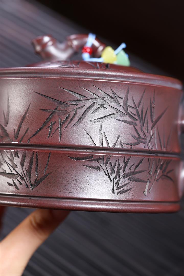 260cc原礦綠泥滿刻熊貓竹段茶壺POT8073