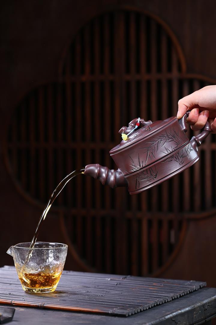 340cc原礦龍骨金砂竹林七賢竹筒茶壺POT8063