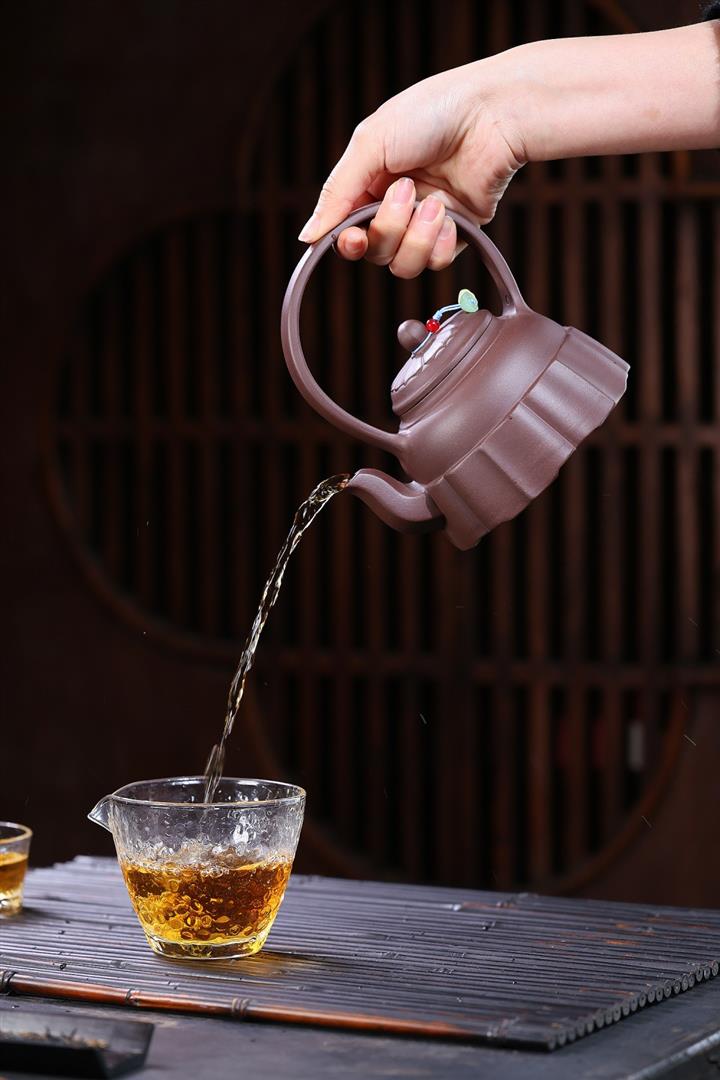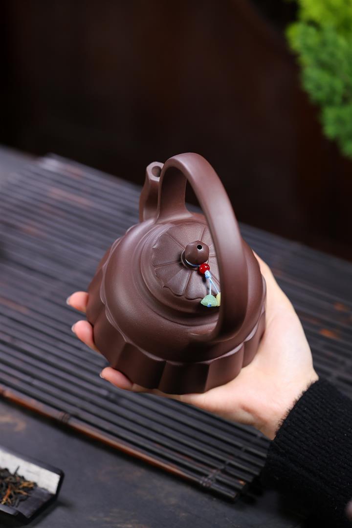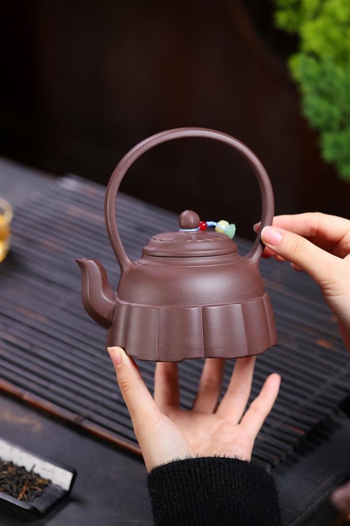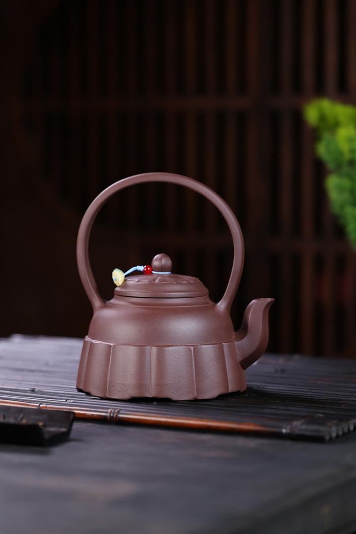 400cc原礦紫泥群花提梁泡茶壺POT10199