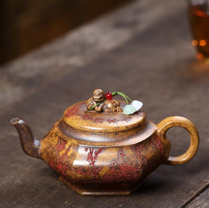 原礦龍骨金砂滿刻六方茶壺POT7725