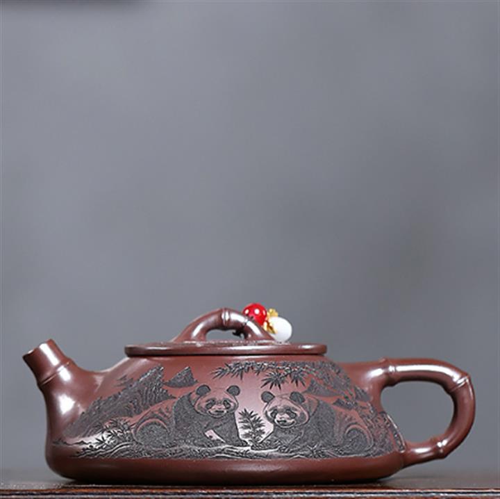 240cc原礦石紅刻繪熊貓竹瓢茶壺POT9276