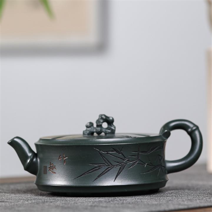 280cc原礦綠泥太湖石竹趣泡茶壺POT9556