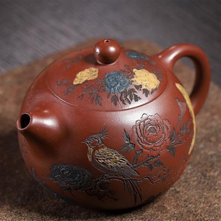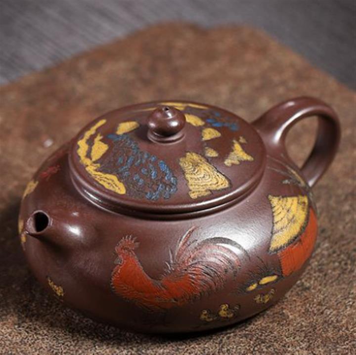 170cc原礦紫泥刻繪寒江泡茶壺POT9815