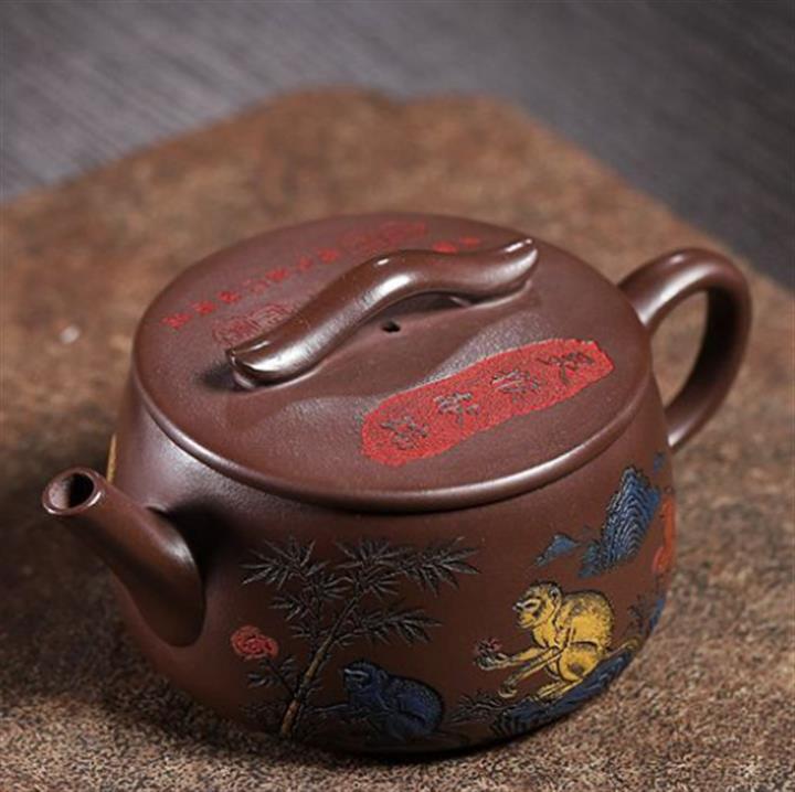 180cc原礦紫泥靈猴祥瑞漢瓦泡茶壺POT9817