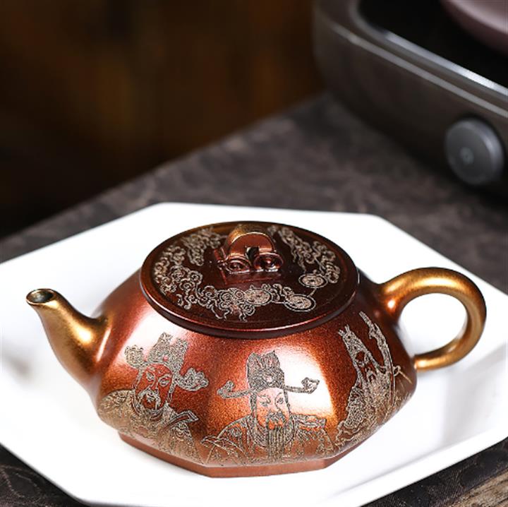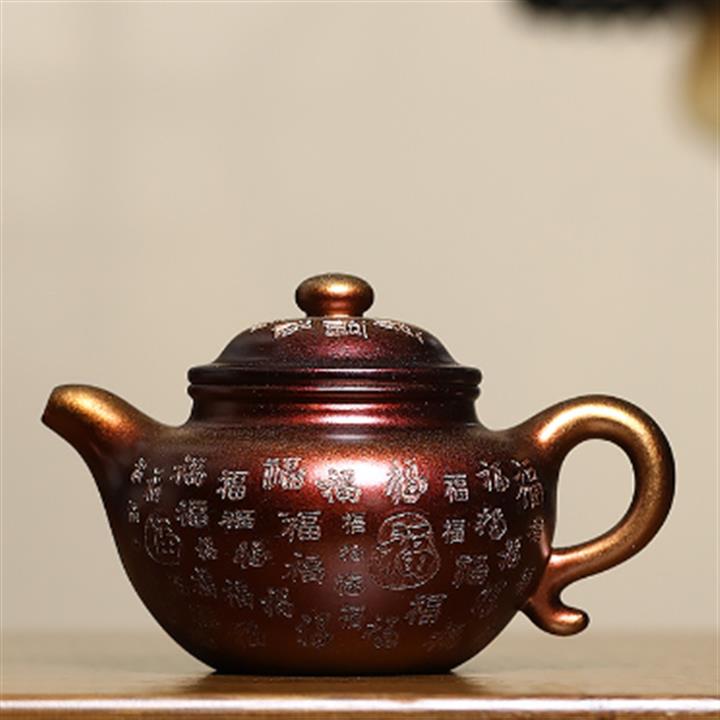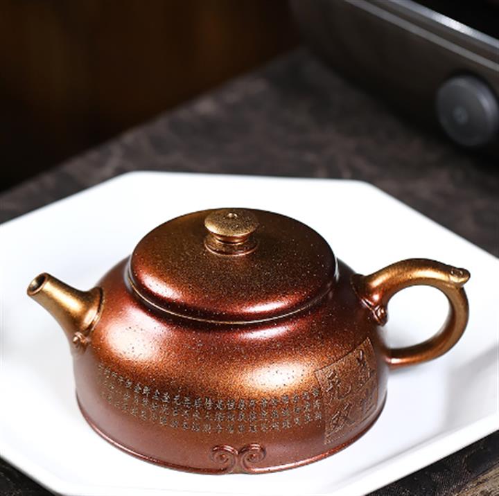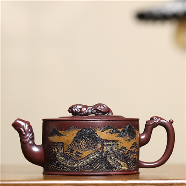 320cc原礦古烏泥萬裏長城彩刻伏虎茶壺POT8723