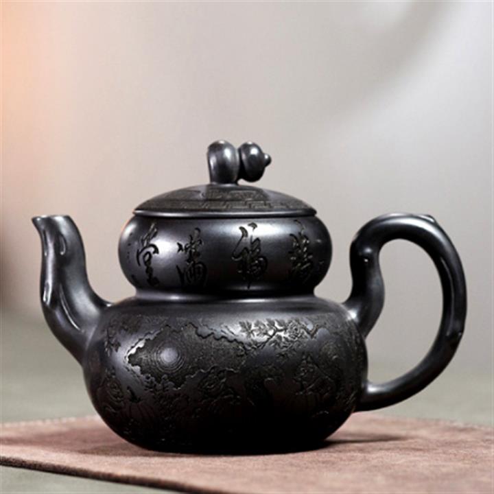 280cc原礦墨綠泥泥繪寒江茶壺POT8804