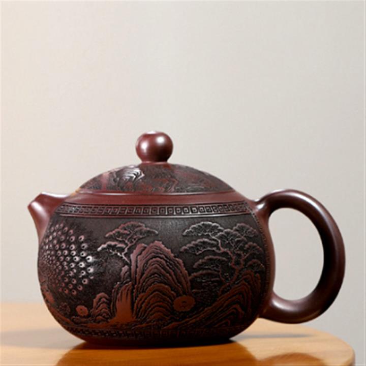600cc原礦石紅泥松鶴延年秦權茶壺POT9020