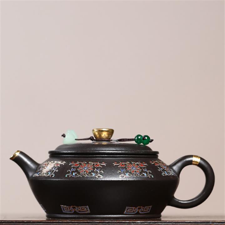 捂灰朱泥琺瑯彩燒曼殊茶壺POT7457
