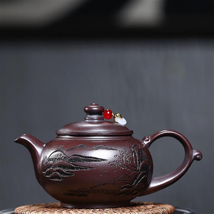 270cc原礦龍山古烏泥觀山水平茶壺POT9473