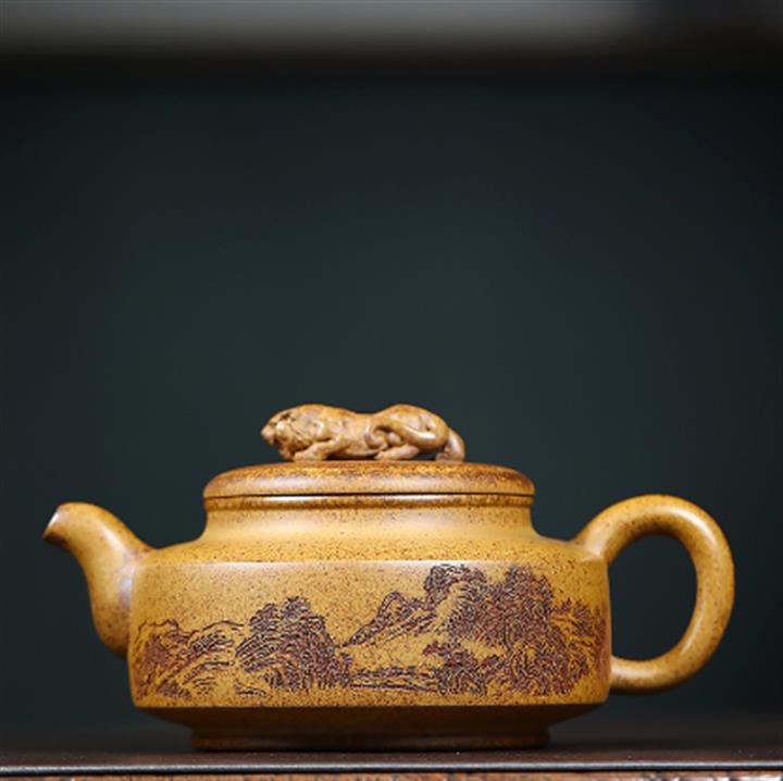 200cc原礦高溫柴燒龍骨金砂山水礎柱茶壺POT9097