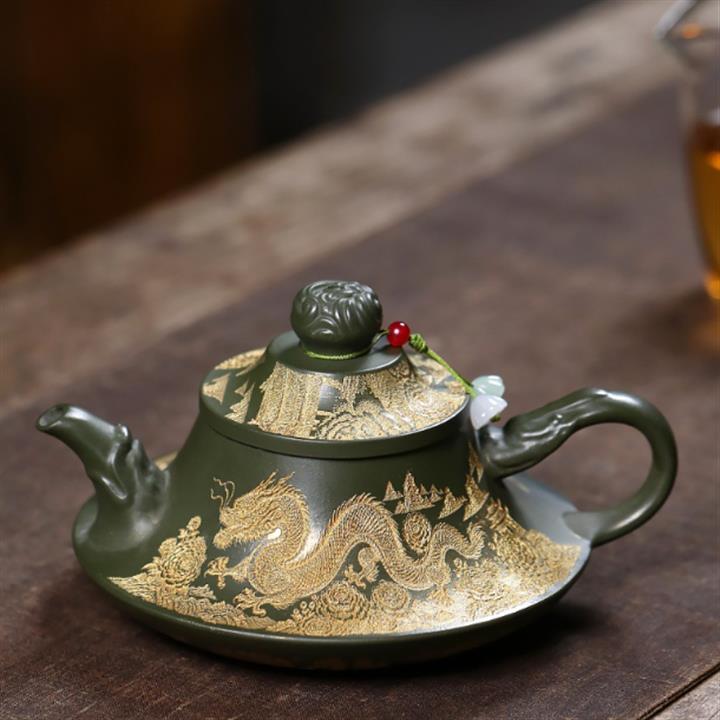 原礦墨綠泥龍鳳齊飛泡茶壺POT7845