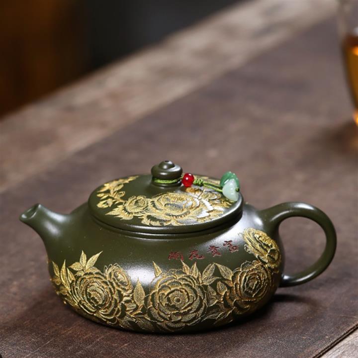 原礦綠泥花開富貴寒江泡茶壺POT7842
