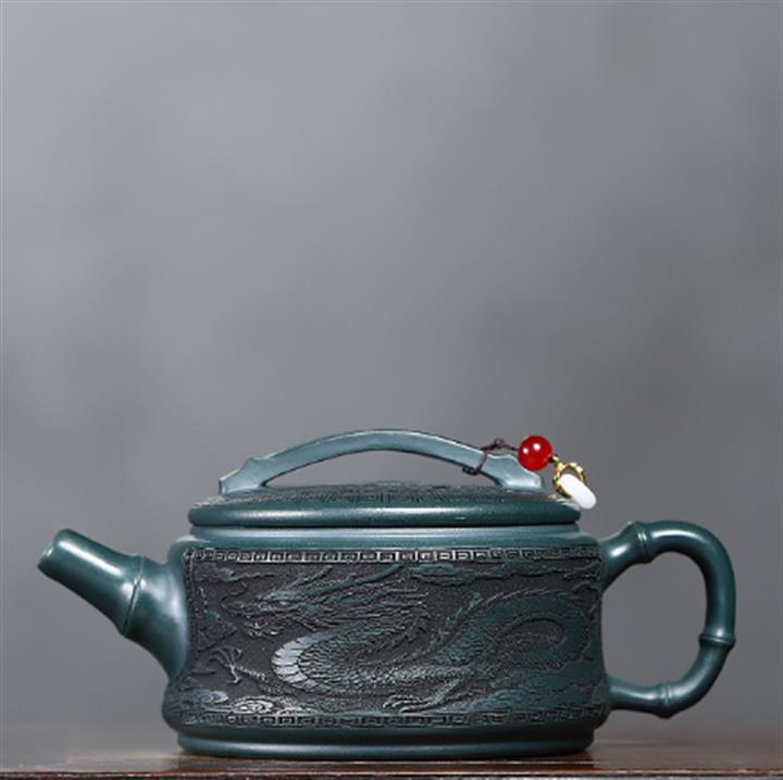 300cc原礦墨綠泥龍鳳呈祥漢瓦茶壺POT9428