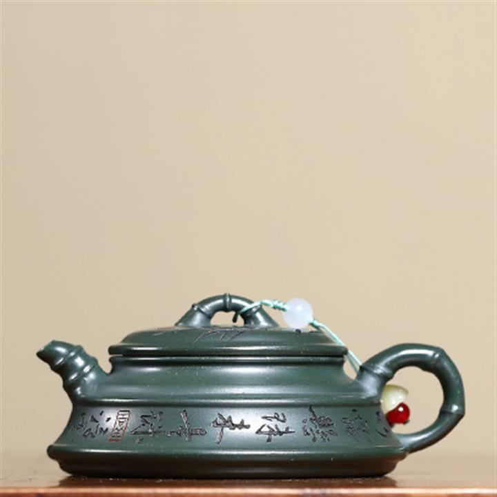 130cc原礦翡翠綠泥雙線竹段泡茶壺POT9932